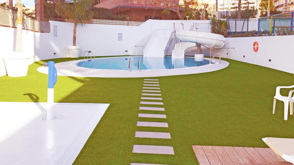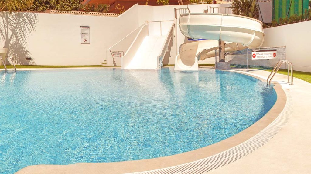 La obra consistió en ejecutarlas en un espacio que en ese momento pertenecía a la zona de servicio del Hotel. El reto del proyecto fue el de diseñar en un área de proporciones muy estrechas (9m de ancho por 47m de lago) unas nuevas piscinas que además albergaran juegos para que los niños disfrutaran.